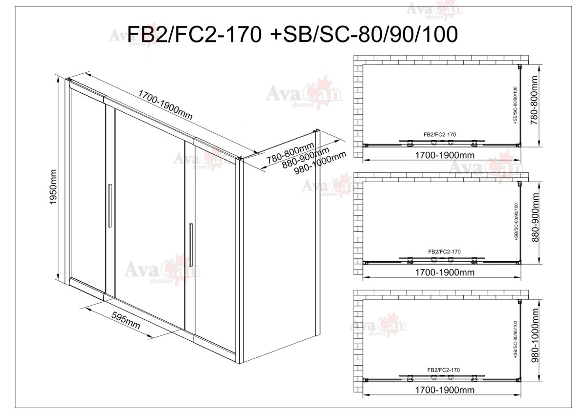 Душевой уголок AvaCan FC2 170-190 + SC100 хром