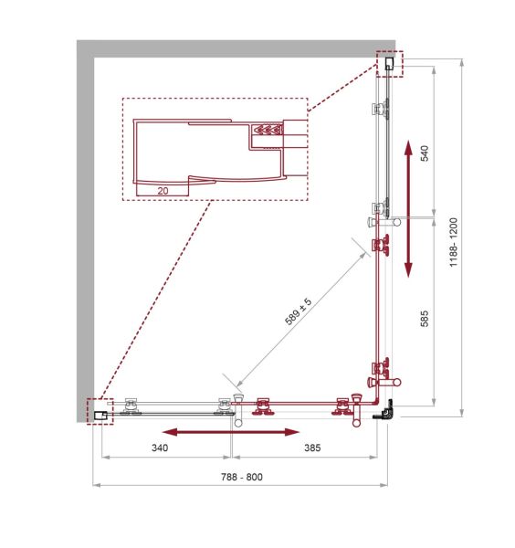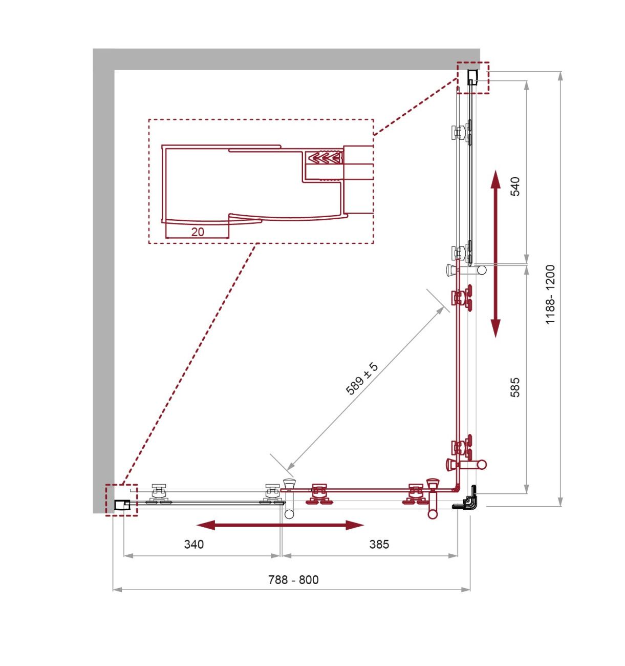 Душевой уголок BelBagno UNO-195-AH-2-120/80-P-Cr хром