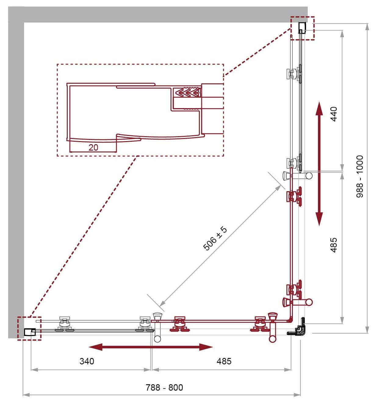 Регулировка ширины: предусмотрена за счет боковых профилей