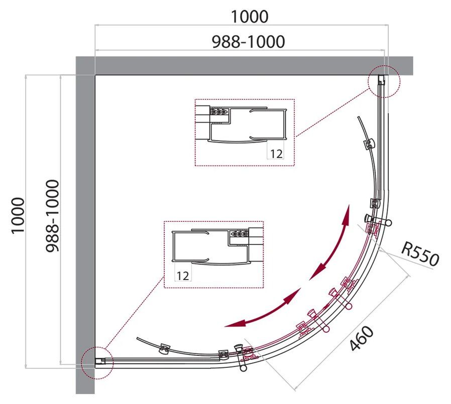 Регулировка ширины: предусмотрена за счет боковых профилей