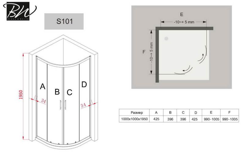 Душевой уголок Black & White Stellar Wind 1011010 100x100 см