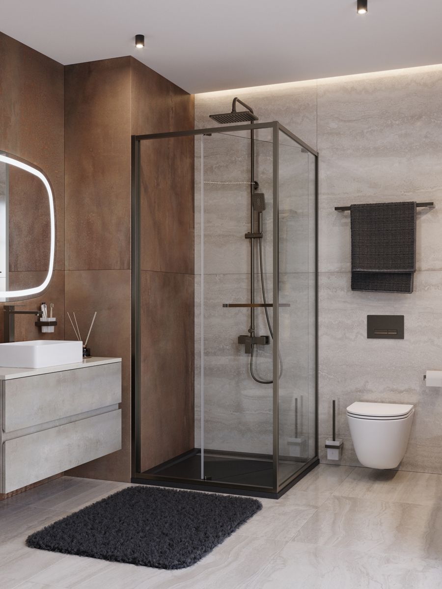 Душевой уголок CEZARES LUX-A-FS-1-90-C-GM Оружейная сталь