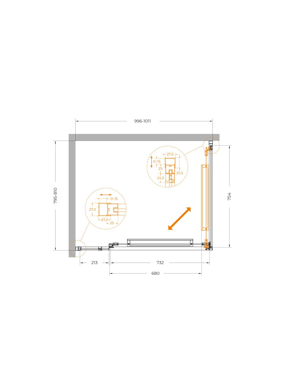 Душевой уголок CEZARES LUX-AH-FS-11-100/80-C-GM оружейная сталь