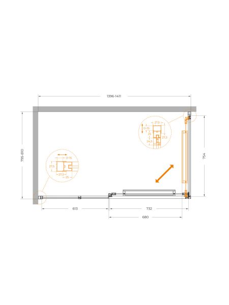Душевой уголок CEZARES LUX-AH-FS-11-140/80-C-GM оружейная сталь