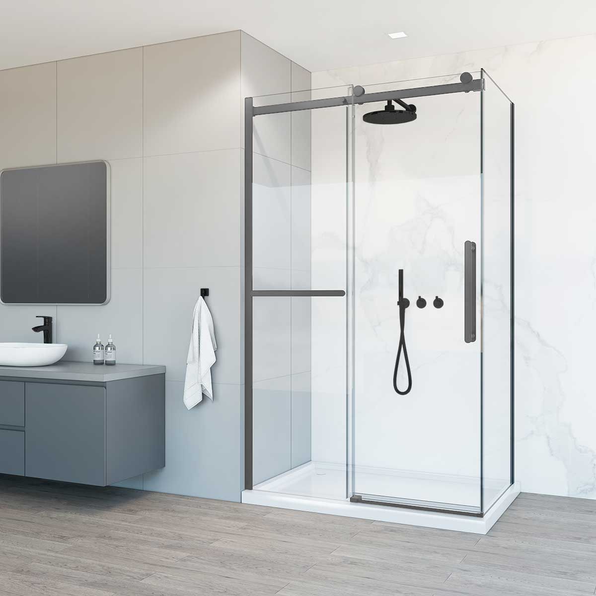 Душевой уголок Vincea Como Soft VSR-1CS9012CLGM, 1200*900, вороненая сталь, стекло прозрачное