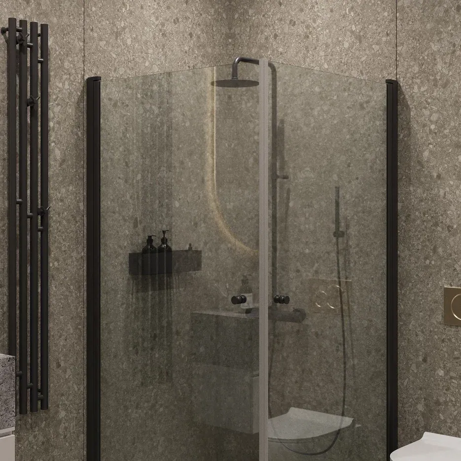 Душевой уголок на монопетле by Deonria U-80-79-6-T-B 80x79см чёрный/прозрачный