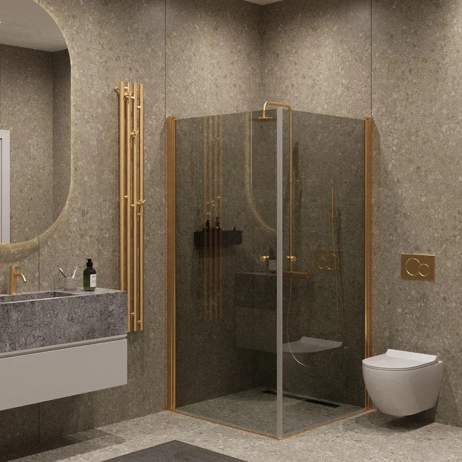 Душевой уголок на монопетле by Deonria U-90-89-6-G-G 90x89см золото/графит