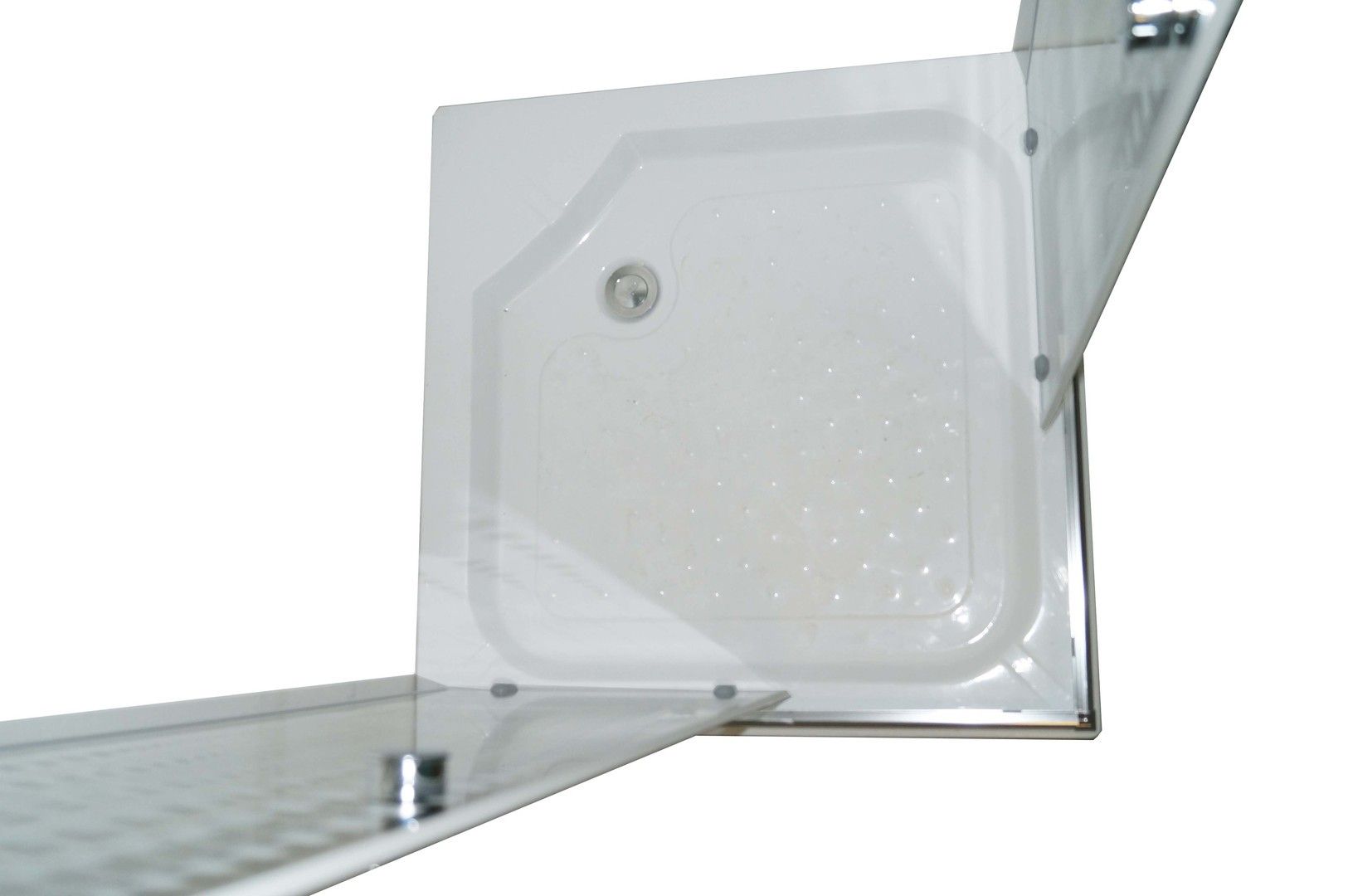 Низкий квадратный поддон (10 см) с рельефным дном будет особенно удобен пожилым и людям с инвалидностью.