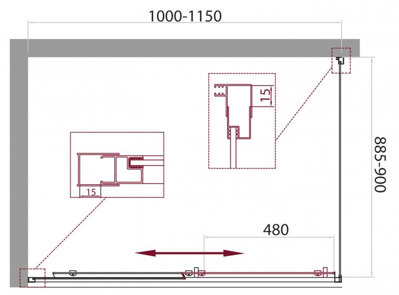 Регулировка ширины: предусмотрена за счет боковых профилей