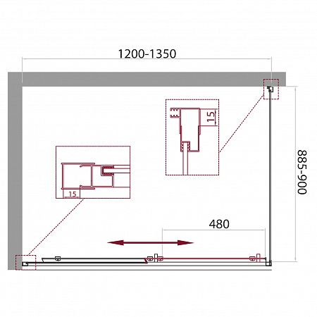 Душевой уголок прямоугольный, хром BelBagno UNIQUE-AH-1-120/135-90-C-Cr