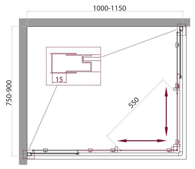 Душевой уголок прямоугольный, хром BelBagno UNIQUE-AH-2-100/115-75/90-C-Cr