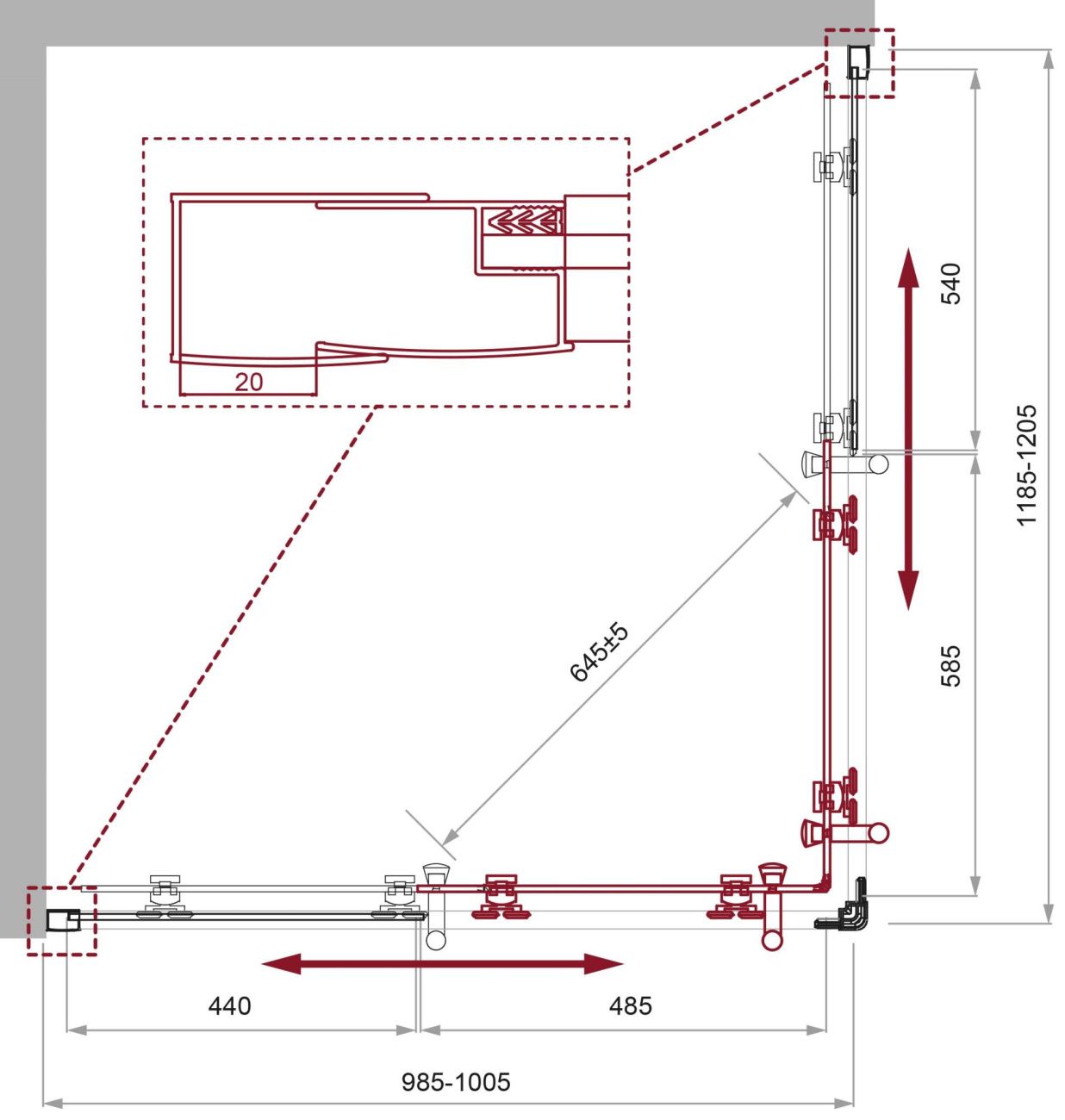 Душевой уголок прямоугольный, хром BelBagno UNO-195-AH-2-120/100-C-Cr