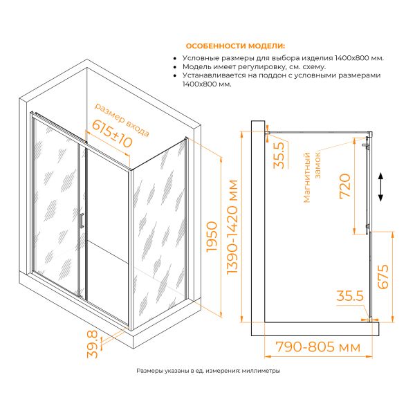 - Конструкция дверей: раздвижная