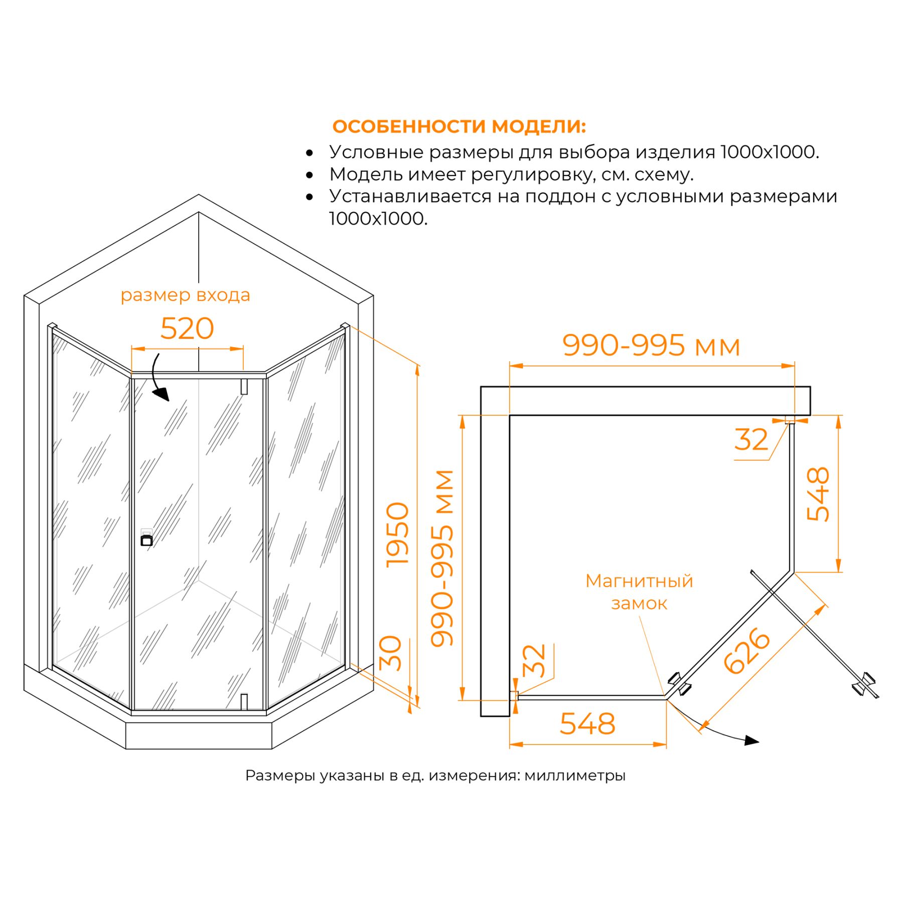 Душевой уголок RGW HO-088B 350608800-24 100x100 см чёрный купить