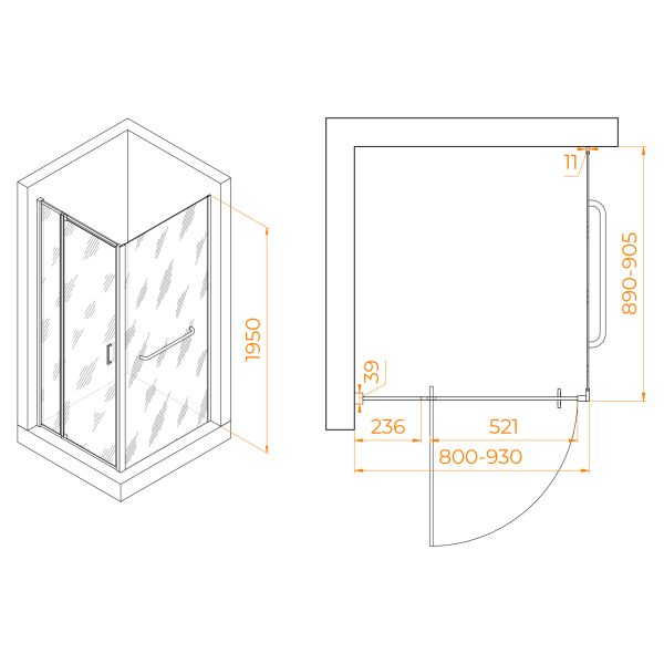 Душевой уголок RGW PA-078-1 (RGW PA-008 + Z-060-2) 3508078189-11 80x90см хром