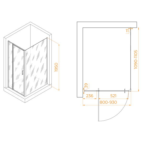 Душевой уголок RGW PA-078B (RGW PA-008B + Z-050-2B) 350807881-14 80x110см чёрный