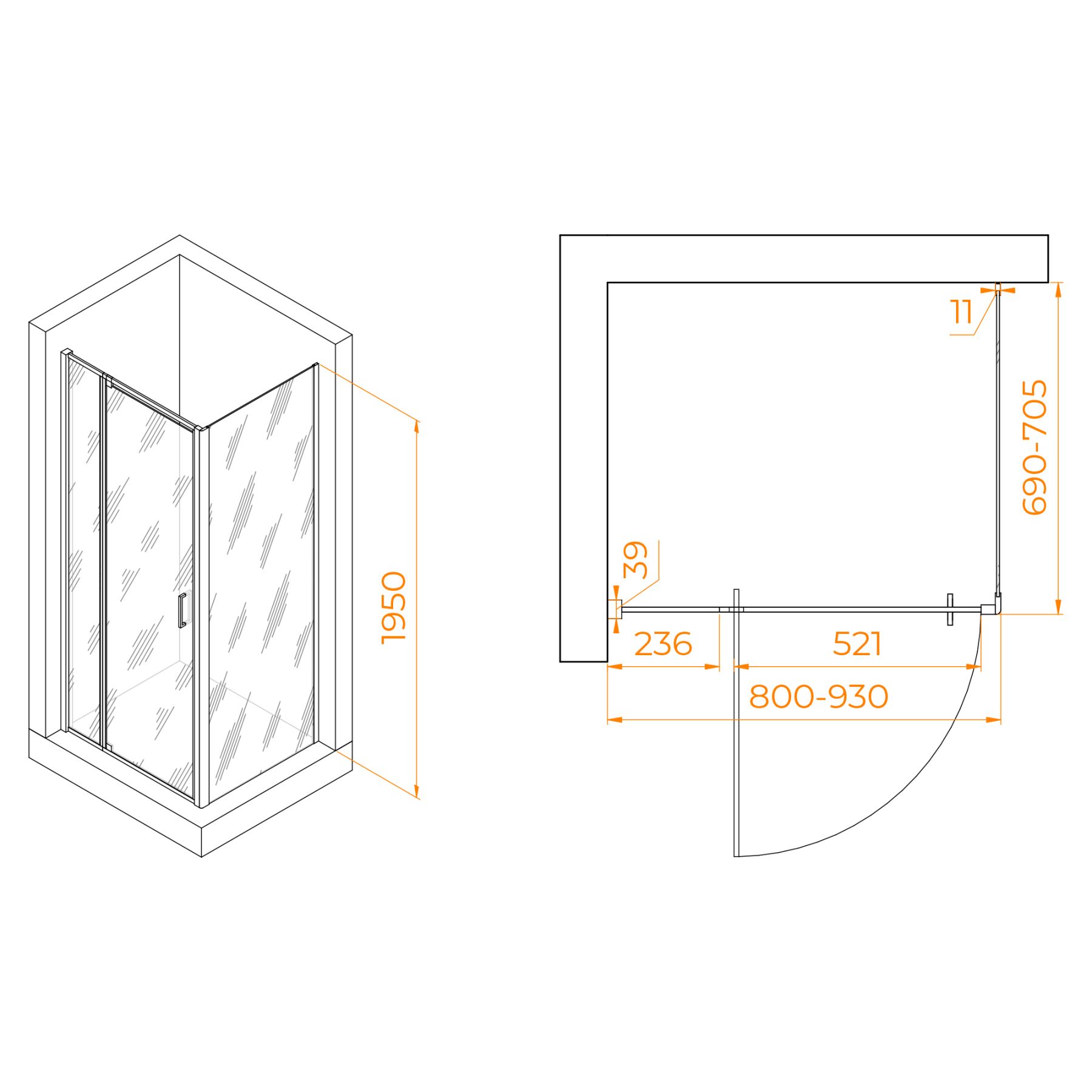 Душевой уголок RGW PA-078B (RGW PA-008B + Z-050-2B) 350807887-14 80x70см чёрный