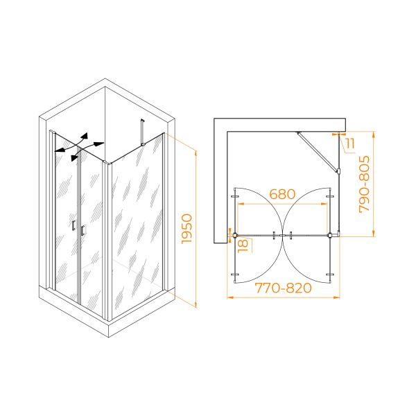 Душевой уголок RGW PA-134B (PA-104B+Z-050-2B+O-204B) 060814488-14 80x80см чёрный