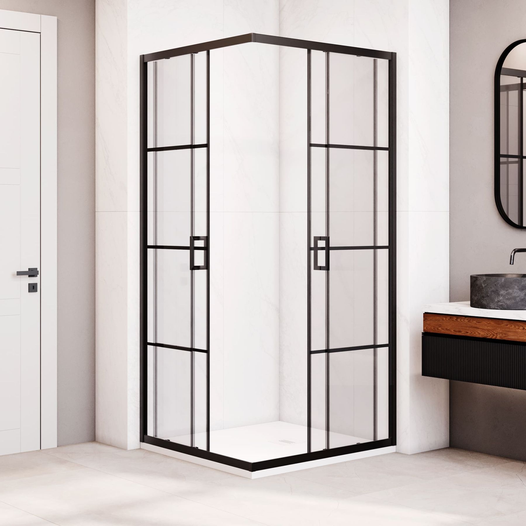 Квадратный душевой уголок RGW PA-34B 90x90 — это идеальное сочетание строгой геометрии, инженерной точности и продуманного комфорта. Модель с раздвижными дверями и выразительным черным контуром на стекле станет стильным и надежным решением для вашей ванной комнаты.