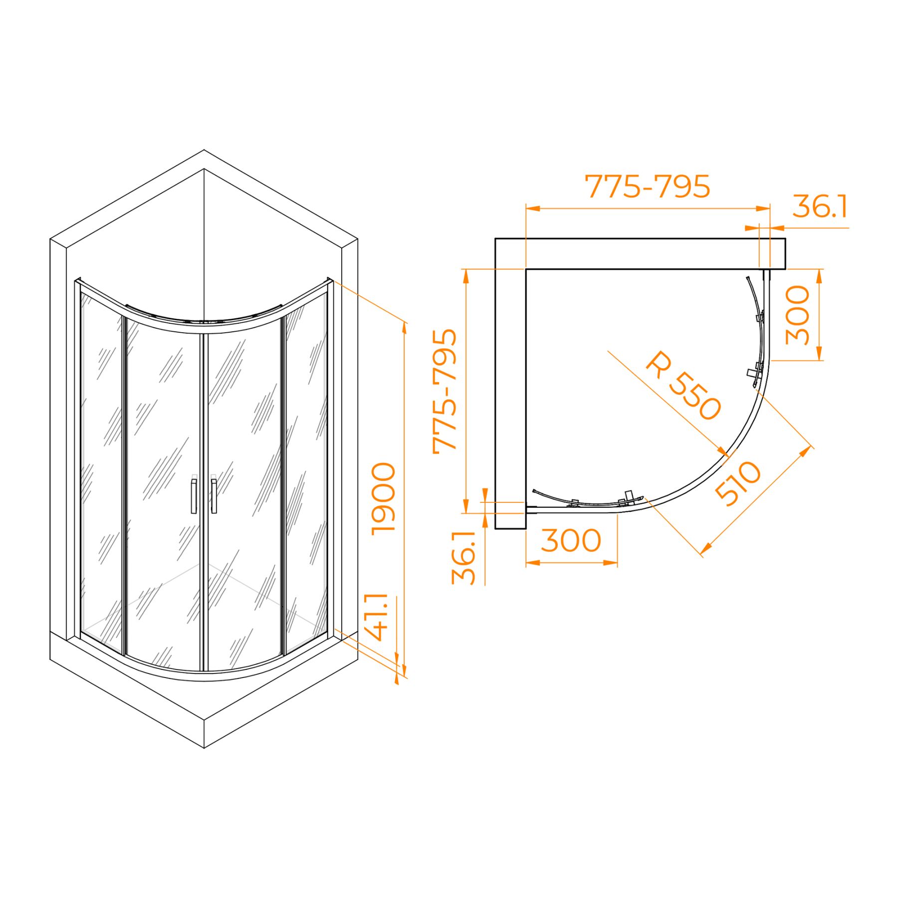 Душевой уголок RGW PA-51B 02085188-14 80x80см чёрный