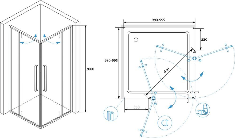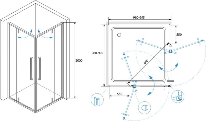Напольный монтаж / монтаж на поддон / монтаж пристенный в угол