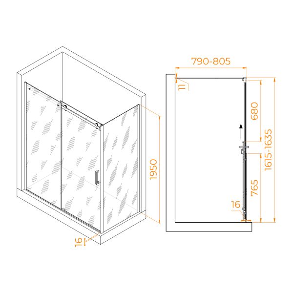 Душевой уголок RGW TO-44-1 (TO-14 + Z-060-2) 020744168-11 160x80см хром