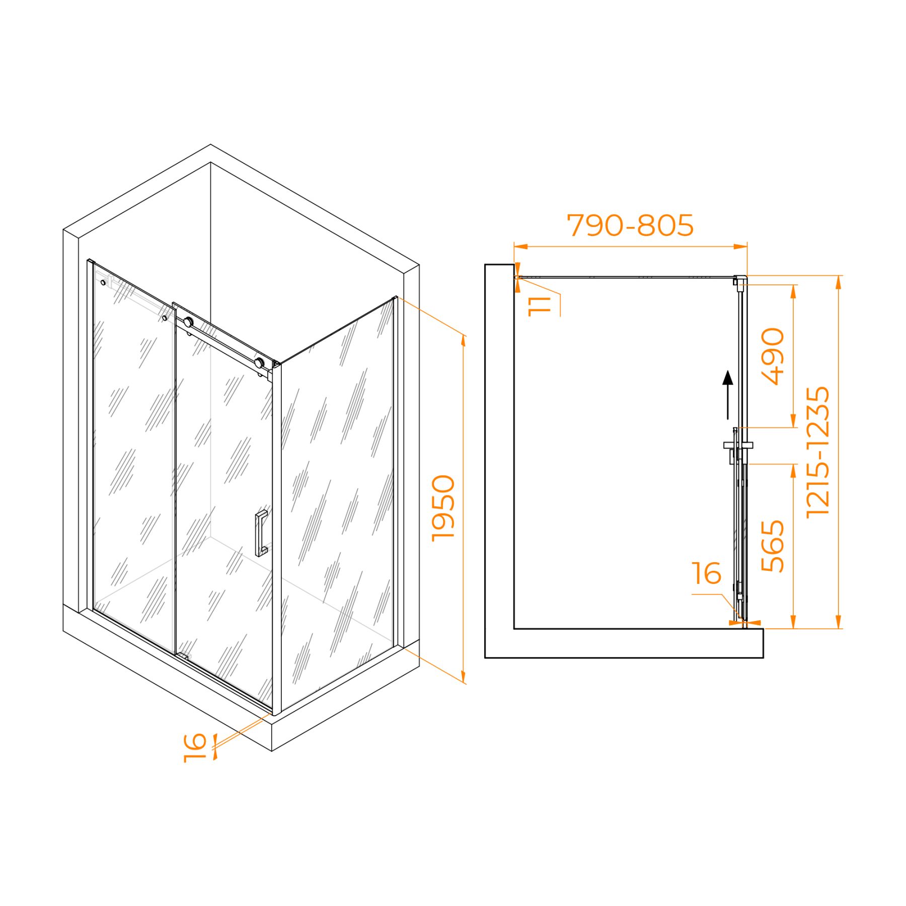 Душевой уголок RGW TO-44B (TO-14B + Z-050-2B) 02074428-14 120x80см чёрный