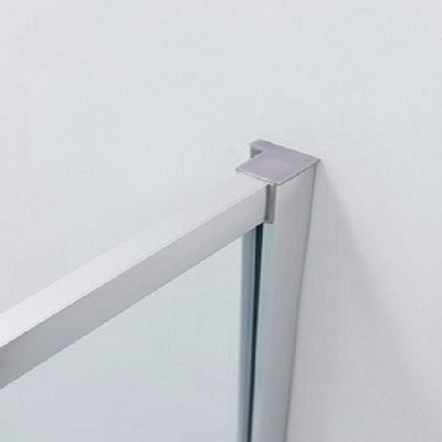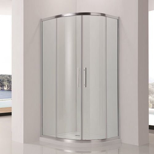 Душевое ограждение с поддоном высотой 150 мм, глянцевый серебристый алюминиевый профиль, латунная ручка, стекло толщиной 6 мм, алюминиевый профиль. Две раздвижные двери.
