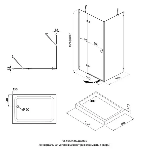 Душевой уголок Triton Брава Щ0000054194 120x80 см профиль хром стекло прозрачное