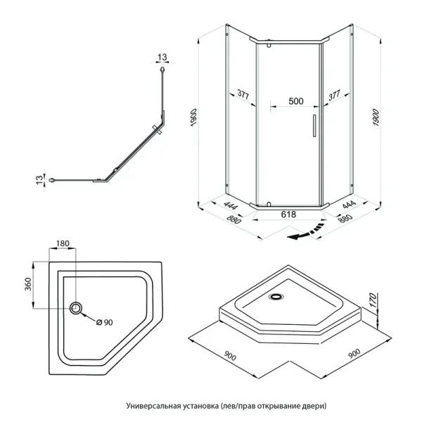 Поддон изготовлен из акрила: высокопрочный, легкий, гигиеничный и долговечный. Гладкая поверхность не впитывает загрязнения