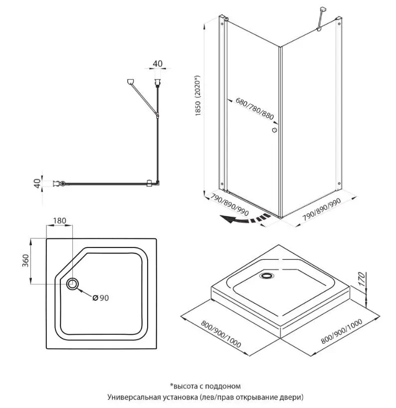 - Размеры: 90х90х185