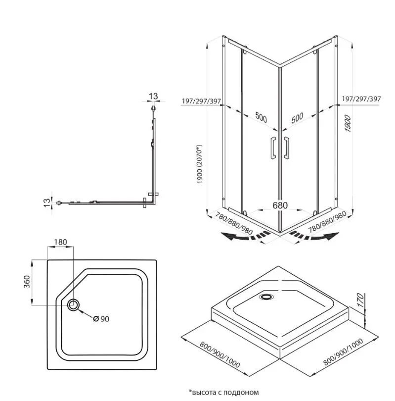 Душевой уголок Triton Каппа Щ0000054220 90x90 см профиль хром стекло прозрачное