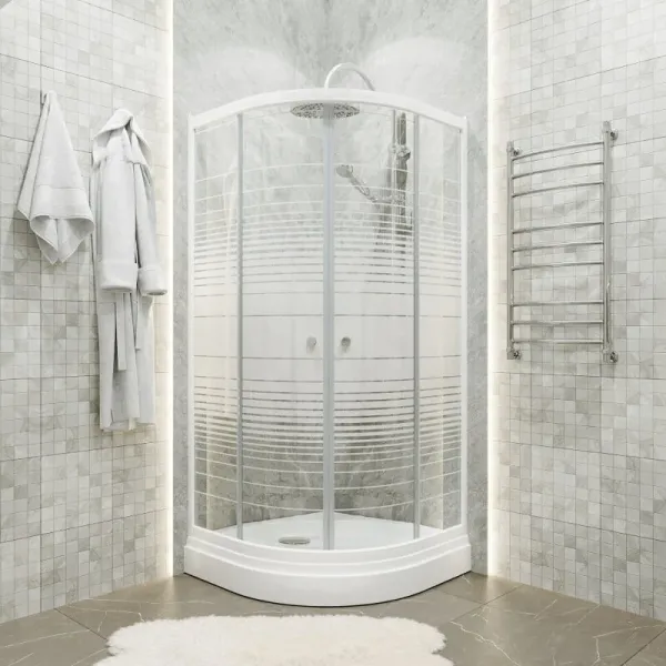 Душевой уголок Triton Стандарт-Полосы Щ0000061805 90x90 см профиль белый стекло с узором купить