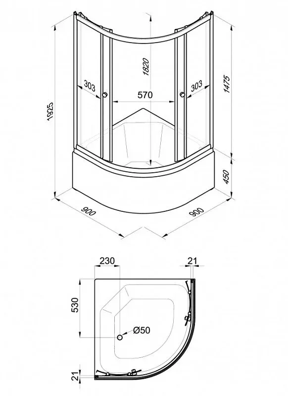 Высота с поддоном: 192.5 см
