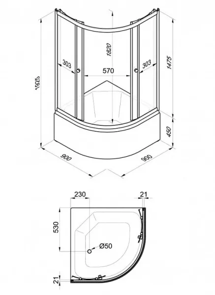 Высота поддона: 45 см, акрил