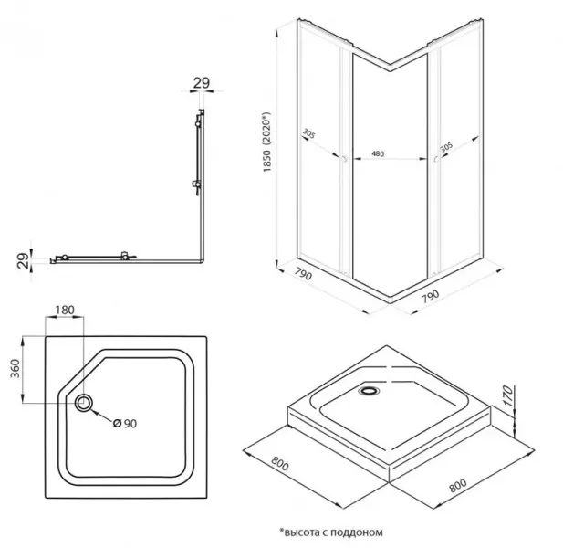 Высота с поддоном: 202 см