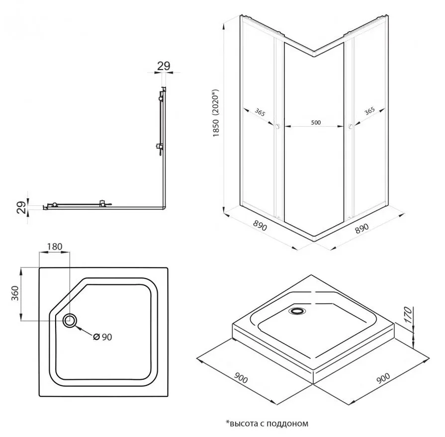 Душевой уголок Triton Вента Щ0000064629 90x90 см профиль чёрный стекло матовое купить