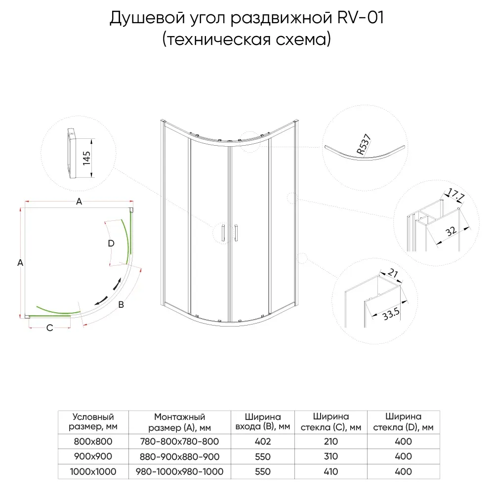 Душевой уголок Veconi Rovigo RV-01, 800x800x1950, хром, стекло прозрачное купить