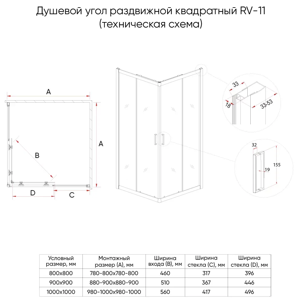 Душевой уголок Veconi Rovigo RV-11, 1200x1200x1950, хром, стекло прозрачное купить