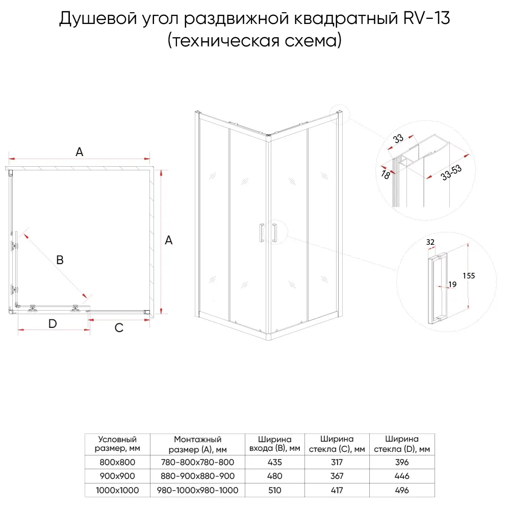 Душевой уголок Veconi Rovigo RV-13, 1200x1200x1950, черный, стекло прозрачное купить