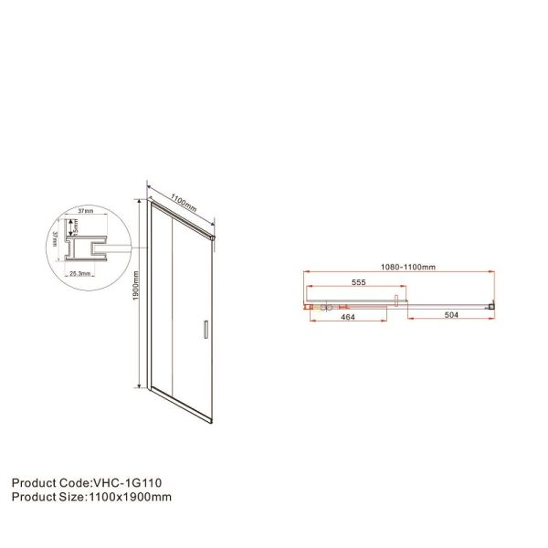 Дверь для душевого уголка Garda VHC-1G110CL, хром, стекло прозрачное VHC-1G110CL