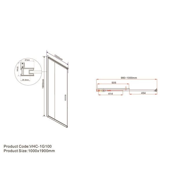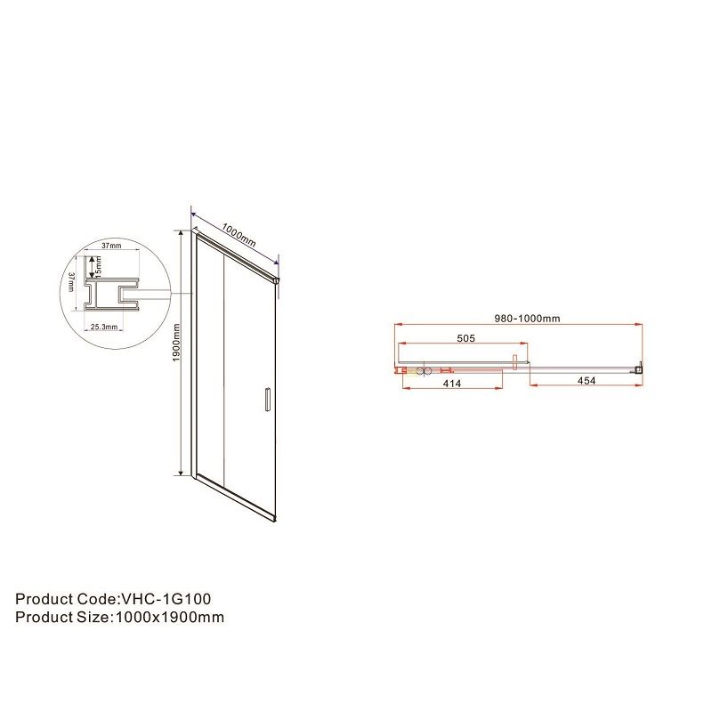 Дверь для душевого уголка Garda VHC-1G100CLB, черный, стекло прозрачное, VHC-1G100CLB