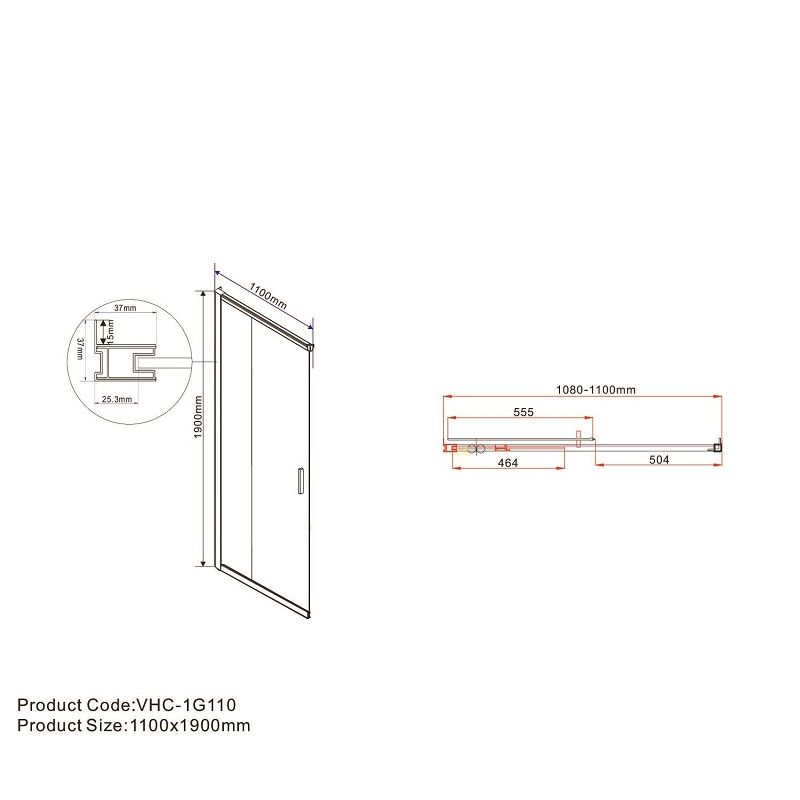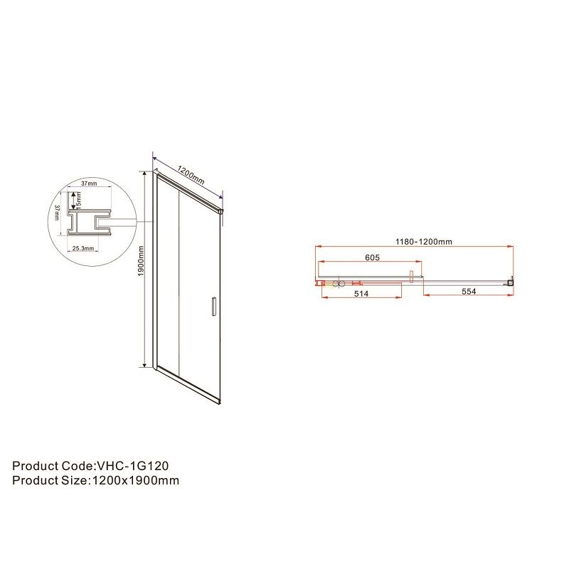 Дверь для душевого уголка Garda VHC-1G120CLB, черный, стекло прозрачное, VHC-1G120CLB