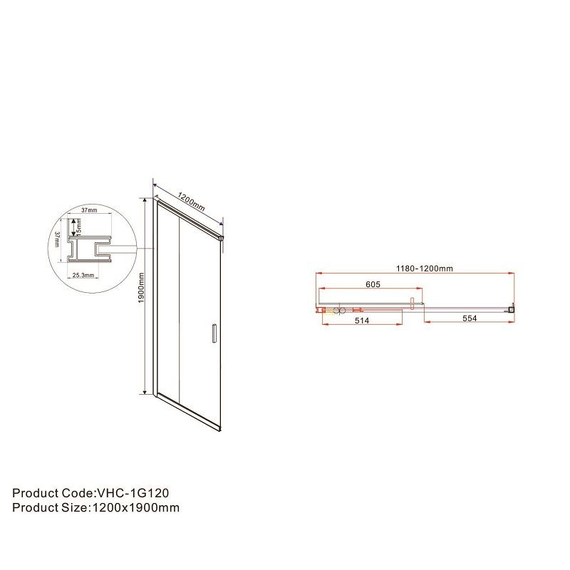 Дверь для душевого уголка Garda VHC-1G120CLB, черный, стекло прозрачное, VHC-1G120CLB