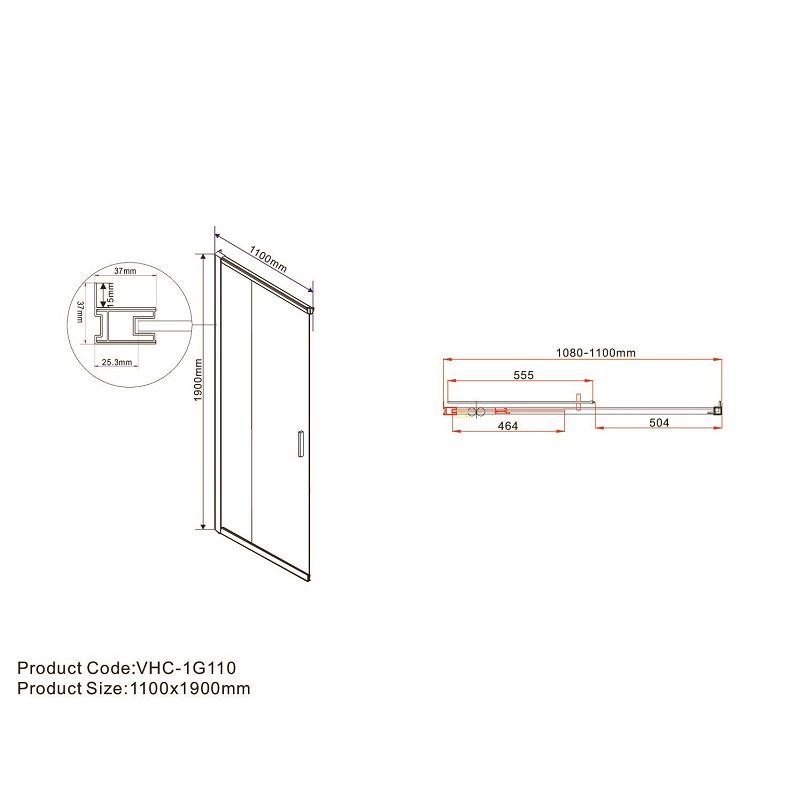 Дверь для душевого уголка Garda VHC-1G110CLB, черный, стекло прозрачное VHC-1G110CLB