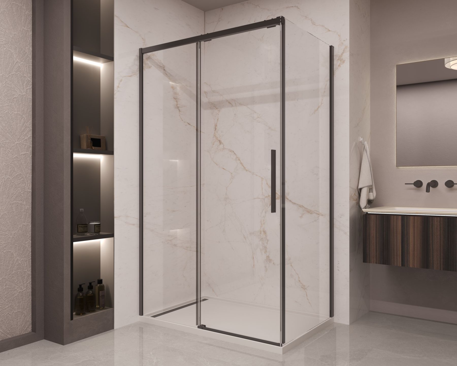 Душевой уголок Vincea Stella VSR-1ST8015CLB, 1500*800, черный, стекло прозрачное купить