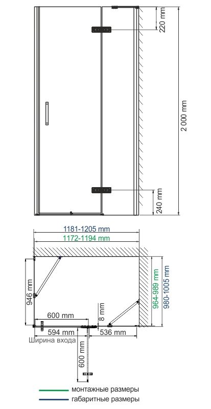 Душевой уголок Wasserkraft Aller 10H10RBLACK 120x100 правый