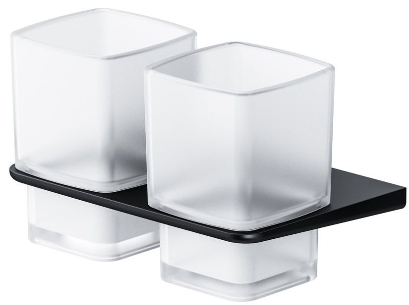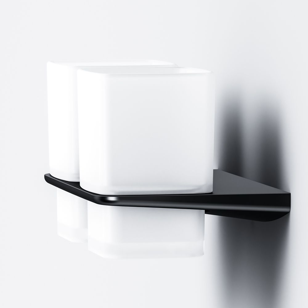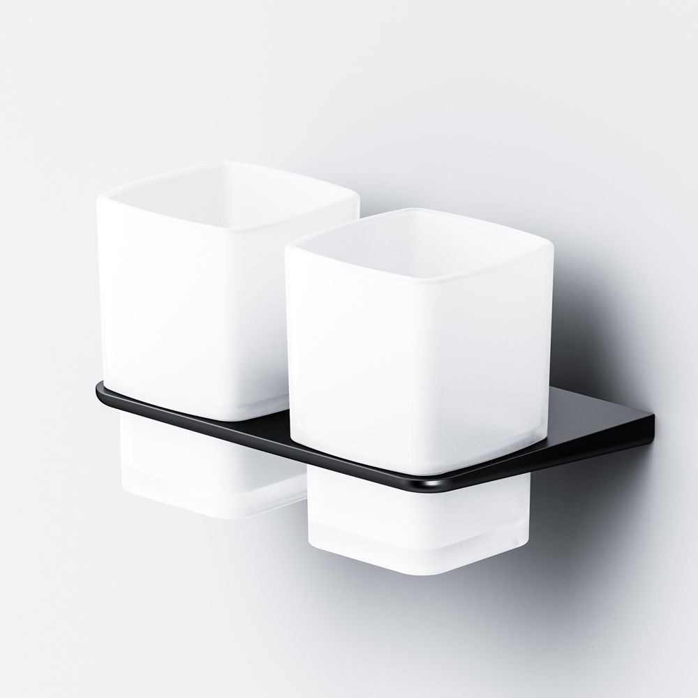 Двойной стеклянный стакан с настенным держателем Am.Pm Inspire 2.0 чёрный матовый A50A343422