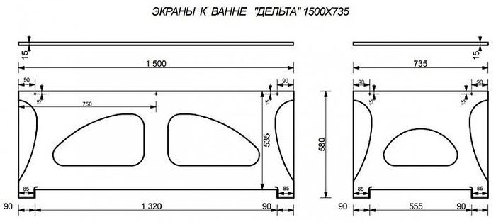 Экран боковой для ванны Эстет Delta 150/170В silk ФР-00014644 75см с узором