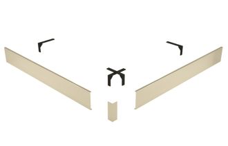 Комплектация: 2 экрана (фронтальный и боковой), соединительный уголок, крепление к ножкам на которые устанавливается поддон.